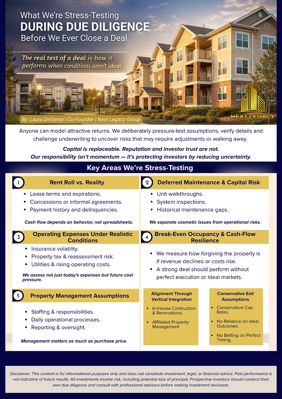 At Next Legacy Group, due diligence isn’t a box to check. It’s the phase where a deal is either validated—or disqualified. As we move through due diligence on The Haven, our focus isn’t upside projections or best-case scenarios.